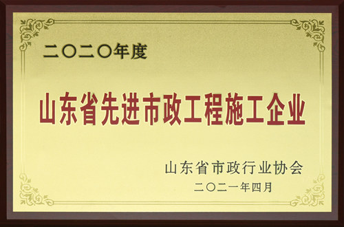 集團榮獲“2020年度山東省先進市政工程施工企業”