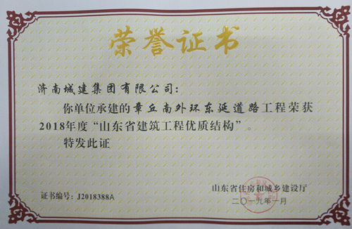 章丘南外環(huán)東延道路工程被評(píng)為2018年度“山東省建筑質(zhì)量泰山杯工程”