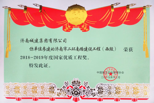 濟(jì)南市二環(huán)南路建設(shè)工程(西段)榮獲“2018-2019年度國(guó)家優(yōu)質(zhì)工程獎(jiǎng)”