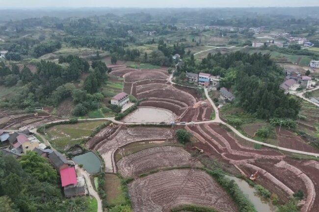 四川內(nèi)江東興區(qū)2025年高標(biāo)準農(nóng)田項目全速推進田塊整治與灌排設(shè)施鋪設(shè)
